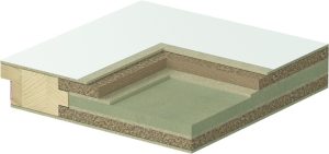 Пълнежът на крилото е специална 5-слойна звукоизолираща конструкция PortaSilence® в рамка от иглолистна дървесина. Двустранно покрита с с HDF плоскости. Предлага се във вариант с фалц и без фалц. С покритие CPL HQ и Гладстон/Халифакс фалцът на вратите е кантиран с ABS кант.